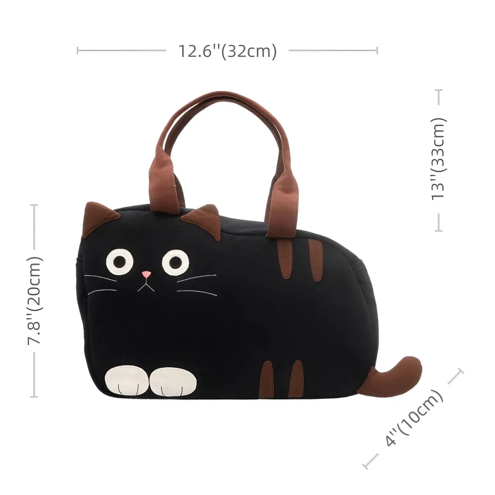 Our handcrafted Kawaii Cat Shoulder Bag, a delightful combination of cuteness and simplicity. This cute bag features a round and chubby cat design that's utterly endearing, handcrafted with meticulous attention to detail. Made from high-quality imported cotton fabric from Pakistan, the bag is both fashionable and artistic, showcasing a patchwork of charming cat motifs that warm hearts. The soft and fluffy tail design adds a unique touch, making this bag a must-have for cat lovers. Measuring 12.6 inches in length, 3.9 inches in depth, and 7.9 inches in height, this kawaii bag provides ample space for your essentials while maintaining its compact size.